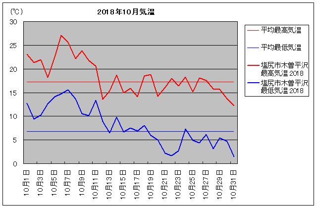 | 10月1日 | 17.3 / 6.8 | 23.1 / 12.8 | 18 | 10月16日 | 17.3 / 6.8 | 15.9 / 7.5 | 0 |