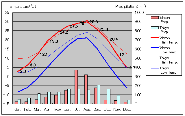 京畿道 利川(イチョン)月別気温(Temperature & Precipitation of Icheon, Gyeonggi Province, South Korea)