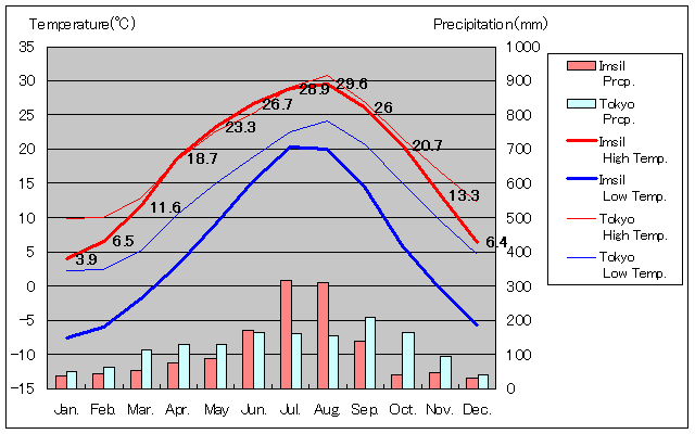 全羅北道 任実(イムシル)月別気温(Temperature & Precipitation of Imsil, North Jeolla Province, South Korea)