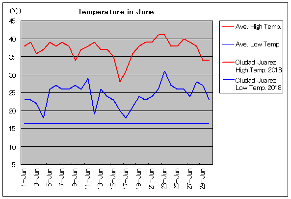 | 6月2日 | 35.6 / 16.3 | 39.0 / 23.0 | 0 | 6月17日 | 35.6 / 16.3 | 31.0 / 18.0 | 0 |