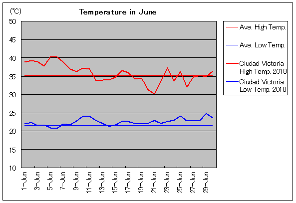 | 6月11日 | 35.2 / 21.5 | 37.0 / 24.0 | 0 | 6月26日 | 35.2 / 21.5 | 32.0 / 22.8 | 0 |