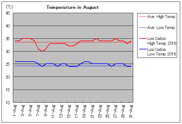 | 8月12日 | 33.6 / 24.2 | 33.0 / 24.0 | 7 | 8月27日 | 33.6 / 24.2 | 35.0 / 25.0 | 2 |