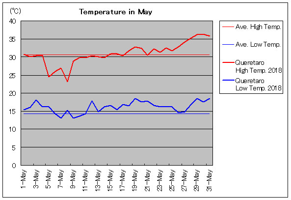 | 5月13日 | 30.7 / 14.3 | 30.0 / 14.8 | 38 | 5月28日 | 30.7 / 14.3 | 35.2 / 16.8 | 0 |