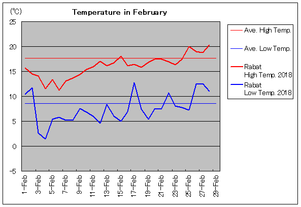 | 2月11日 | 17.7 / 8.6 | 15.9 / 6.0 | 0 | 2月26日 | 17.7 / 8.6 | 19.0 / 12.4 | 4 |