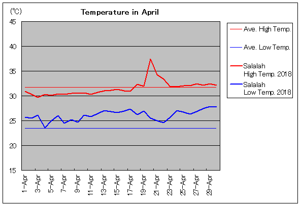 | 4月6日 | 31.7 / 23.4 | 30.4 / 26.0 | 11 | 4月21日 | 31.7 / 23.4 | 34.3 / 25.0 | 0 |