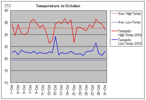 | 10月3日 | 32.7 / 19.4 | 34.2 / 21.5 | 0 | 10月18日 | 32.7 / 19.4 | 36.6 / 22.0 | 0 |