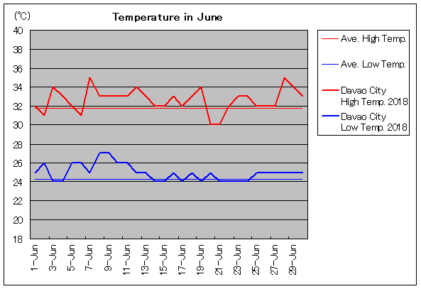 | 6月3日 | 31.8 / 24.2 | 34.0 / 24.0 | 19 | 6月18日 | 31.8 / 24.2 | 33.0 / 25.0 | 0 |