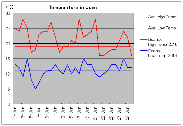 | 6月4日 | 19.0 / 11.0 | 25.0 / 15.0 | 0 | 6月19日 | 19.0 / 11.0 | 23.0 / 13.0 | 0 |