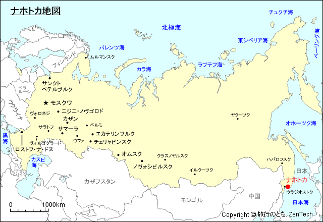 ロシアにおけるナホトカの場所が判る地図
