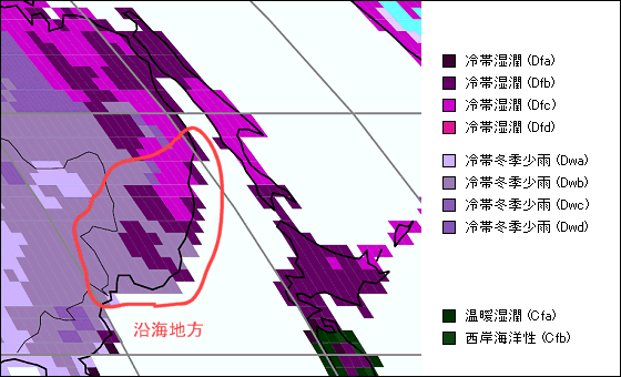 沿海地方気候地図(Climate map of Primorsky Krai, Far Eastern Federal District, Russia)