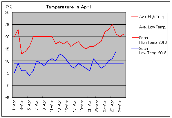 | 4月3日 | 16.6 / 9.0 | 13.0 / 6.0 | 34 | 4月18日 | 16.6 / 9.0 | 18.0 / 9.0 | 0 |
