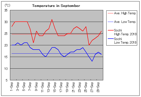 | 9月14日 | 24.7 / 16.4 | 31.0 / 19.0 | 6 | 9月29日 | 24.7 / 16.4 | 24.0 / 17.0 | 0 |