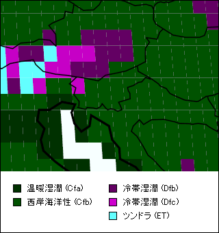 スロベニア気候区分地図、スロベニアの大部分が西岸海洋性気候、北西部で冷帯湿潤気候