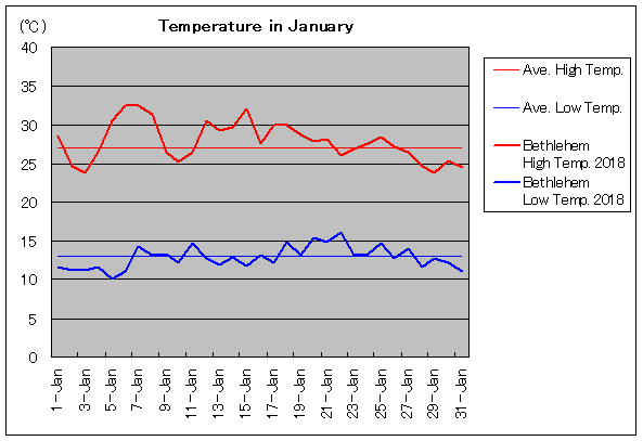 | 1月12日 | 27.0 / 13.0 | 30.6 / 12.7 | 13 | 1月27日 | 27.0 / 13.0 | 26.4 / 14.0 | 11 |