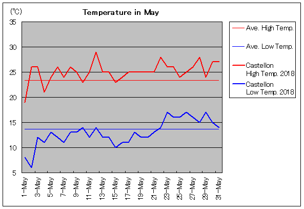 | 5月12日 | 23.4 / 13.6 | 29.0 / 14.0 | 0 | 5月27日 | 23.4 / 13.6 | 26.0 / 16.0 | 7 |