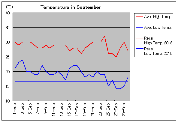 | 9月9日 | 26.3 / 16.6 | 29.0 / 20.0 | 0 | 9月24日 | 26.3 / 16.6 | 32.0 / 19.0 | 0 |