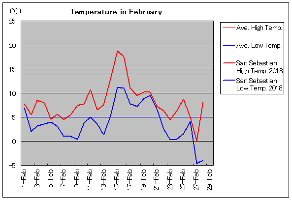 | 2月12日 | 13.8 / 5.0 | 6.5 / 3.5 | 8 | 2月27日 | 13.8 / 5.0 | 0.1 / -4.6 | 0 |