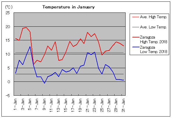 | 月日 | 平均気温 最高 / 最低 | 2018年1月 最高 / 最低 | 降水量 | 月日 | 平均気温 最高 / 最低 | 2018年1月 最高 / 最低 | 降水量 |