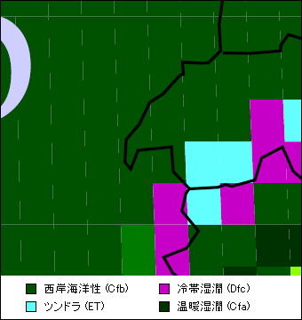 | 平均気温(℃) | 1.5 | 2.8 | 5.4 | 9.1 | 13.3 | 16.7 | 19.3 | 18.6 | 15.5 | 10.9 | 5.8 | 2.4 |