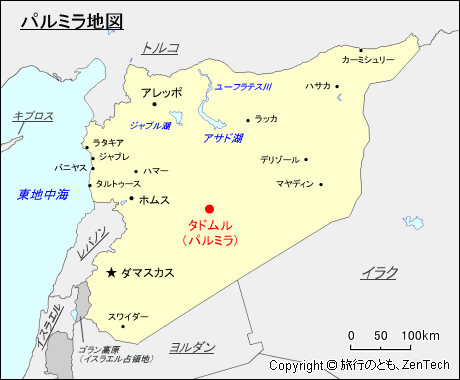 パルミラ月別気温(Temperature & Precipitation of Palmyra (Tadmur), Homs Governorate,Syria):ホムス県タドモル(Tadmur)にある古代ローマ帝国時代の都市遺跡、シリアの首都ダマスカスから北東へ215キロメートルの場所(シリア砂漠)に位置しています。
