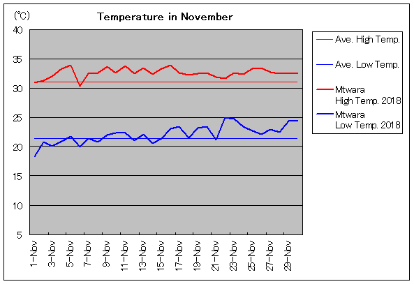 | 11月9日 | 31.0 / 21.5 | 33.7 / 22.0 | 10 | 11月24日 | 31.0 / 21.5 | 32.4 / 23.4 | 0 |