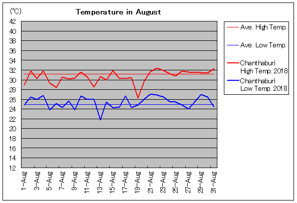| 8月11日 | 31.2 / 24.9 | 30.6 / 26.0 | 2 | 8月26日 | 31.2 / 24.9 | 31.8 / 24.8 | 12 |