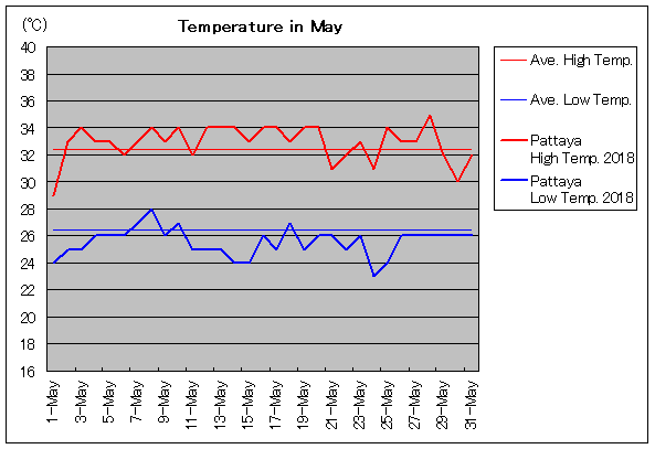 | 5月11日 | 32.4 / 26.4 | 32.0 / 25.0 | 18 | 5月26日 | 32.4 / 26.4 | 33.0 / 26.0 | 33 |