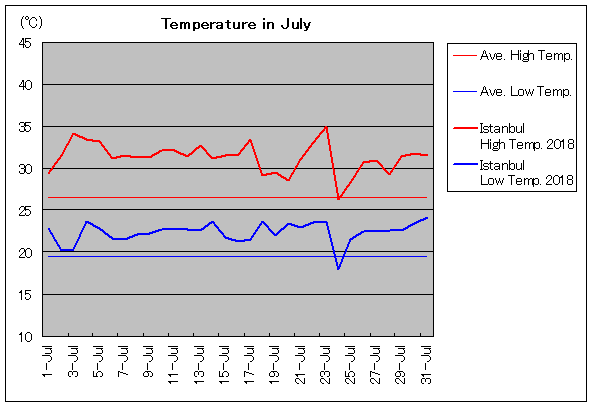 | 7月3日 | 26.6 / 19.4 | 34.1 / 20.4 | 0 | 7月18日 | 26.6 / 19.4 | 29.1 / 23.7 | 0 |