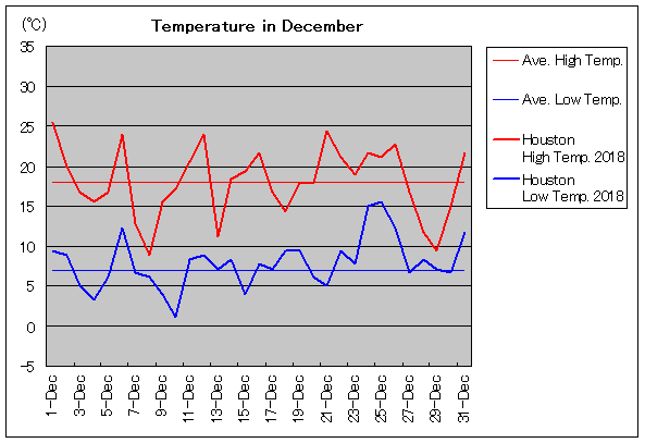 | 12月6日 | 17.9 / 7.0 | 23.9 / 12.2 | 21 | 12月21日 | 17.9 / 7.0 | 24.4 / 5.0 | 0 |