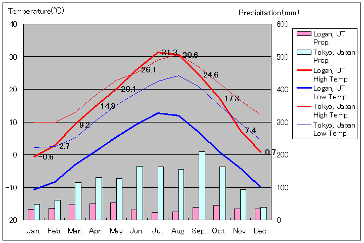 ユタ州キャッシュ郡ローガン月別気温(Temperature & Precipitation of Logan, Cache County, State of Utah, United States of America)