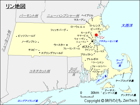 アメリカ合衆国マサチューセッツ州リンと東京の気温および降水量グラフ