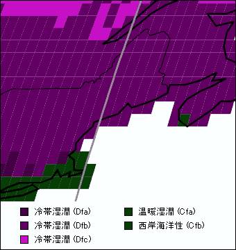 | 平均最高気温(℃) | -0.4 | 1.4 | 5.6 | 11.8 | 17.5 | 22.9 | 26 | 25.4 | 21.1 | 14.8 | 8.9 | 2.9 |