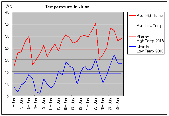 | 6月9日 | 24.3 / 14.2 | 26.1 / 12.1 | 3 | 6月24日 | 24.3 / 14.2 | 20.0 / 14.8 | 19 |