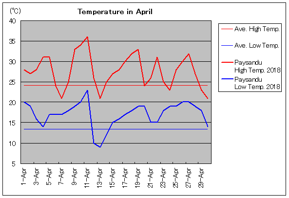 | 4月11日 | 24.1 / 13.4 | 36.0 / 23.0 | 11 | 4月26日 | 24.1 / 13.4 | 30.0 / 20.0 | 0 |
