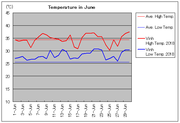 | 6月8日 | 34.4 / 25.6 | 37.0 / 27.8 | 5 | 6月23日 | 34.4 / 25.6 | 35.5 / 30.3 | 0 |