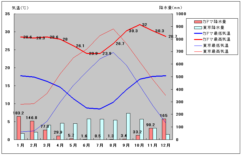 カドマ月別気温(Temperature & Precipitation of Kadoma)
