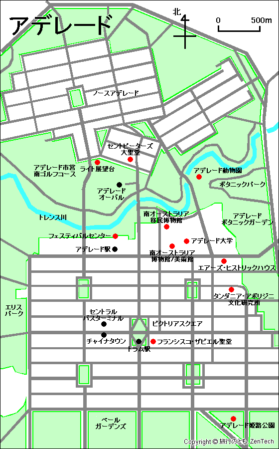 南オーストラリア州の州都になっているアデレードの地図です。アデレードにある観光名所の場所が判ります。このアデレード地図は、データ改変と再配布を行わない事および出典(引用元)を明記する事を条件に無料かつ自由に利用可能です。著作権は当サイトに帰属します。Webサイトで地図を利用される場合は当サイトへのリンクをお願いします。