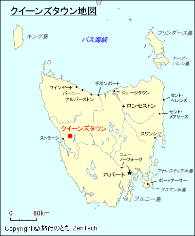 オーストラリアにおけるクイーンズタウンの場所が判る地図
