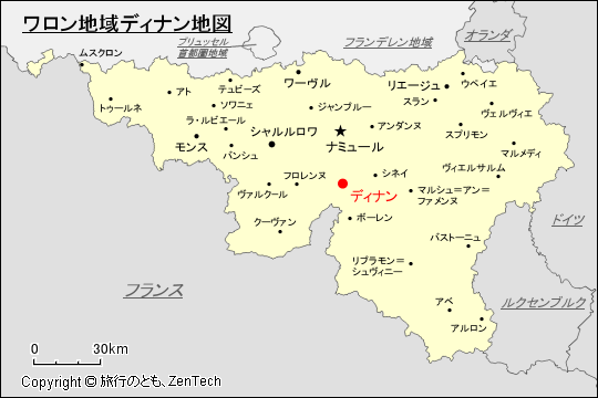 ディナン地図(Map of Dinant, provincie Namur, Région Walonne, Belgium)、Google Map