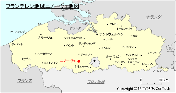 フランデレン地域におけるニノーヴェの位置が判る地図