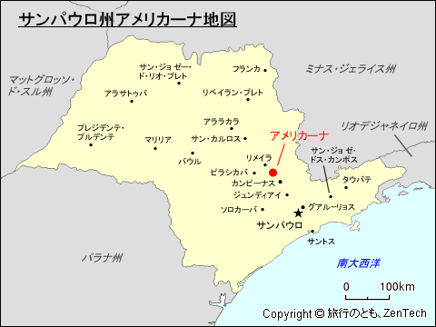 サンパウロ州におけるアメリカーナの場所が判る地図