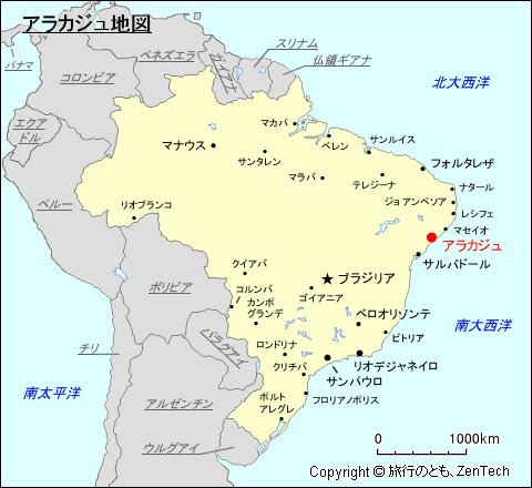 ブラジルにおけるアラカジュの場所が判る地図(Map of Aracaju, Sergipe State, Brazil, Brazil)