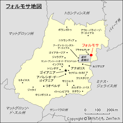 ブラジルにおけるフォルモサの場所が判る地図(Map of Formosa, Goias State, Brazil)