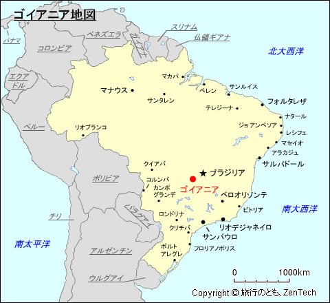 ブラジルにおけるゴイアニアの場所が判る地図(Map of Goiânia, Goiás State, Brazil)