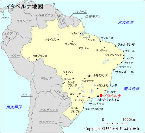 ブラジルにおけるイタペルナの場所が判る地図(Map of Itaperuna, Rio de Janeiro State, Brazil)