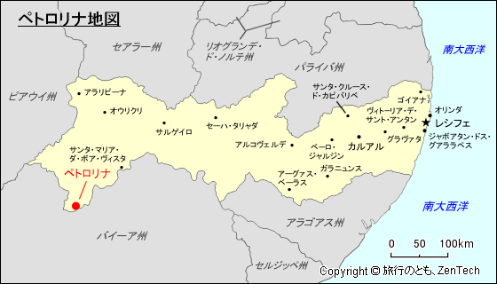 ブラジルにおけるペトロリナの場所が判る地図(Map of Petrolina, Pernambuco State, Brazil)