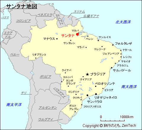 ブラジルにおけるサンタナの場所が判る地図(Map of Santana, Amapá State, Brazil)