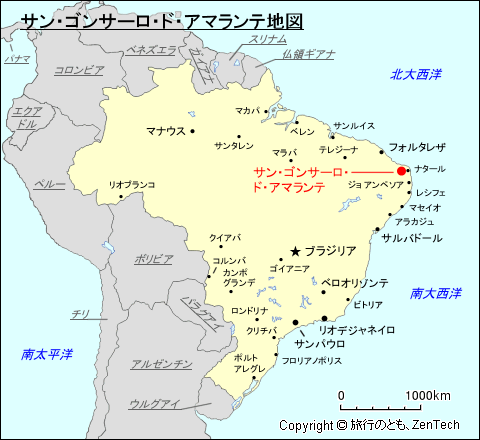 ブラジルにおけるサン・ゴンサーロ・ド・アマランテの場所が判る地図(Map of São Gonçalo do Amarante, Rio Grande do Norte State, Brazil)