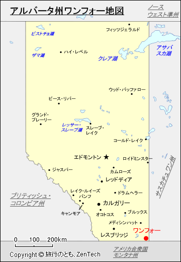 ワンフォー(オーンファー、英語:Onefour, Alberta)は、カナダ西部内陸のアルバータ州にある集落(Hamlet)です。