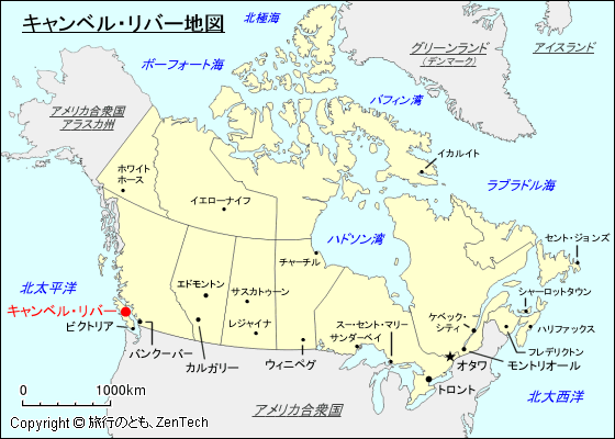 カナダにおけるキャンベル・リバーの位置が判る地図(Map of Campbell River, British Columbia, Canada)